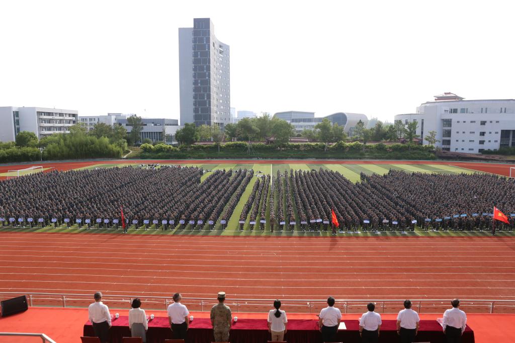 9月10日上午,我校2025级新生开学典礼暨军训动员大会在科技路校区田径场隆重举行。校党委书记陆志群授军训旅旗并宣布军事训练开始。党委副书记、院长傅玉峰为全体新生讲授“开学第一课”,并作军训动员。校领导班子成员,全体教官,各部门、二级学院负责人,全体辅导员和新生班班主任,以及2025级全体同学参加。党委副书记陈鸣鸣主持开学典礼。