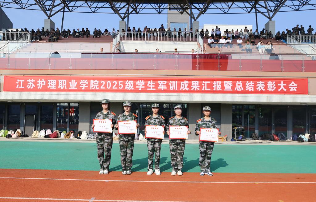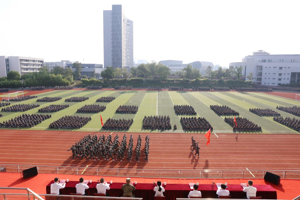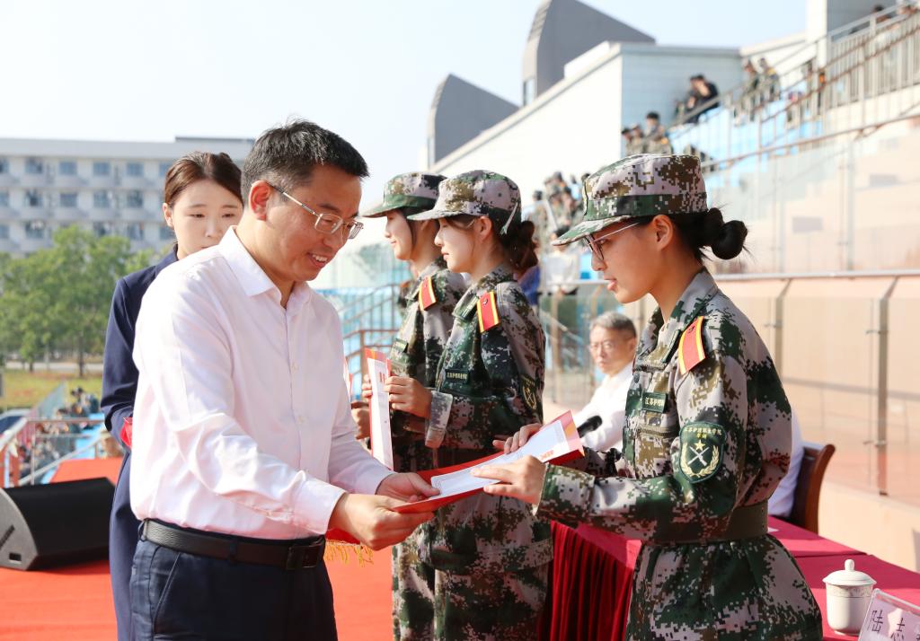 9月21日,我校2025级新生军训成果汇报暨总结表彰大会在科技路校区举行。党委书记陆志群作军训总结讲话,党委副书记、院长傅玉峰为队列会操先进班集体颁奖。73106部队中校政治教导员张融,校领导班子成员,学校中层干部、军训教官、全体辅导员及新生班主任,2025级全体同学参加大会。