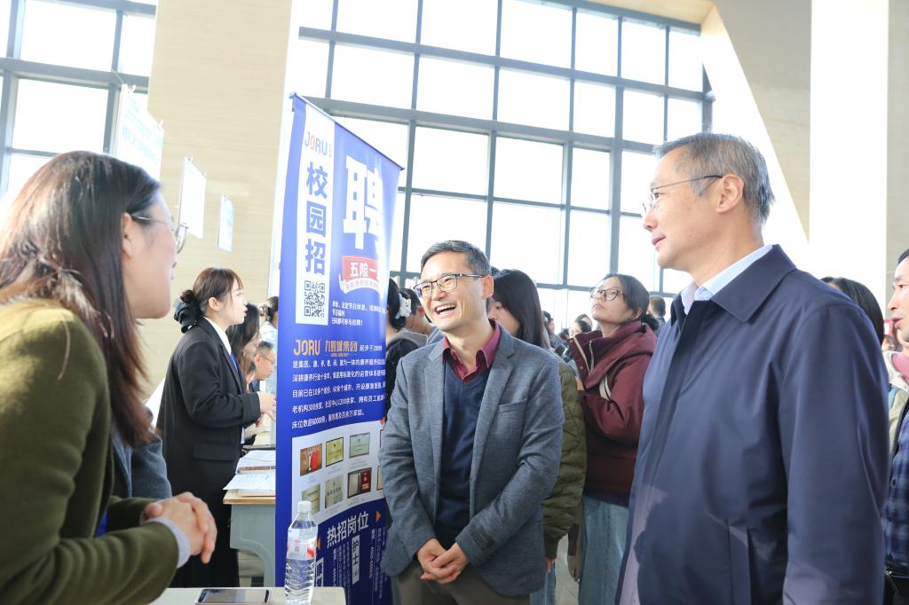 校党委副书记陈鸣鸣、省招就中心工作专员莅临现场指导就业工作。陈鸣鸣与用人单位代表深入交流,要求学校各部门精心组织学生就业服务,为毕业生顺利就业、尽早就业提供充分保障。他鼓励广大毕业生抓住校园招聘会的宝贵机会,尽早与心仪单位签约。