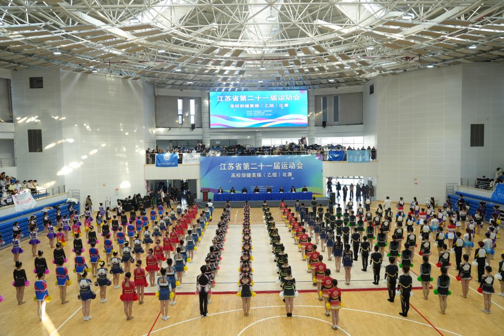 11月18日,江苏省第二十一届运动会健美操、啦啦操比赛(乙组)在我校开幕。校党委副书记、院长傅玉峰,省学校体育联合会高校工作委员会副主任梁培根,省学校体育联合会高校工作委员会副秘书长吴明出席开幕式,校党委委员、副院长史亚明主持开幕式。