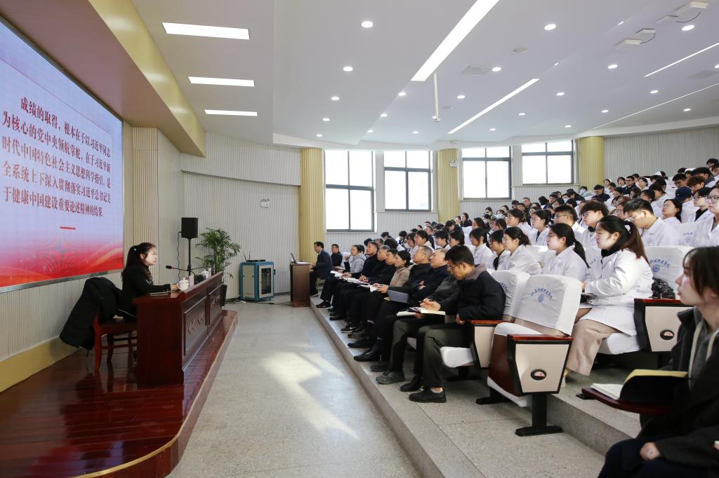 思政课上,朱岷带领师生员工认真学习习近平总书记关于健康中国的重要论述,强调指出党的十八大以来,以习近平同志为核心的党中央坚持以人民为中心的发展思想,把人民健康放在优先发展的战略地位,健康中国建设驶上“快车道”。朱岷指出,全省卫生健康系统始终坚持以习近平新时代中国特色社会主义思想为指导,深入贯彻落实新时代党的卫生与健康工作方针,聚焦高质量发展主题,扎实推进健康江苏建设,持续深化医药卫生体制改革,不断健全人口发展支持和服务体系,更好统筹发展和安全,群众健康水平进一步提升,全省卫生健康事业高质量发展取得显著成效。