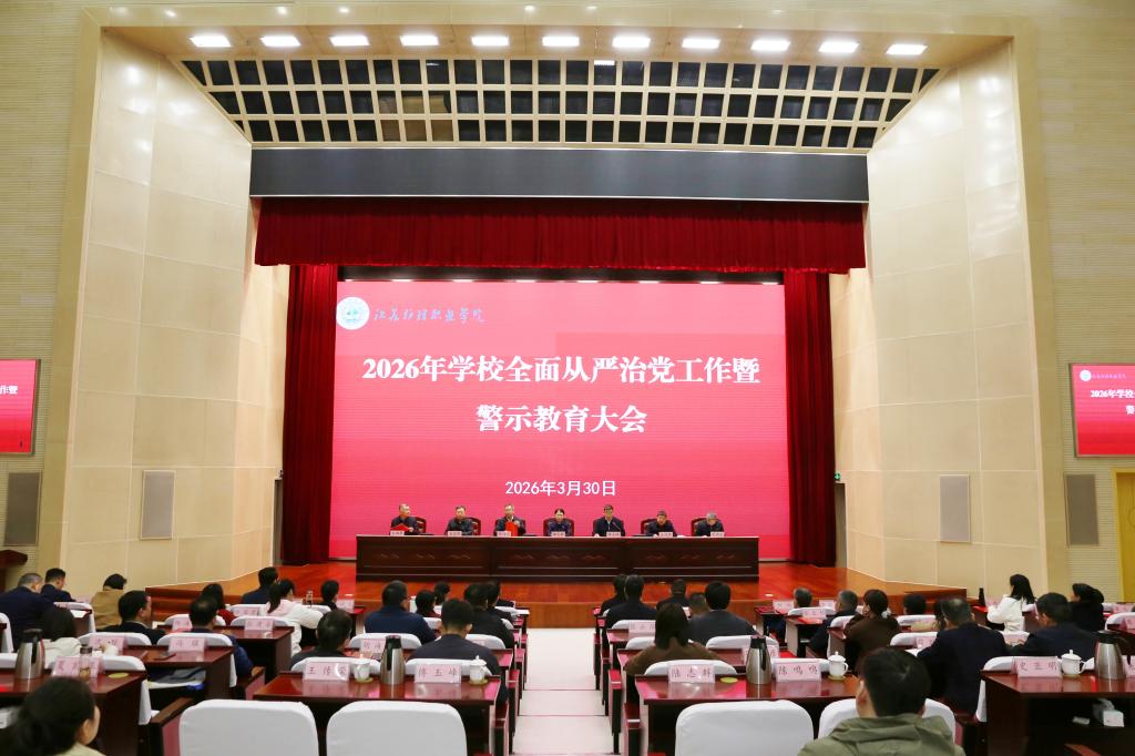 3月30日下午,我校召开2026年全面从严治党工作暨警示教育会议。校党委领导班子成员,纪委委员,中层干部,内设执行机构负责人,各二级党组织委员、所属党支部书记,党委工作部门及纪委机关全体人员参加会议。