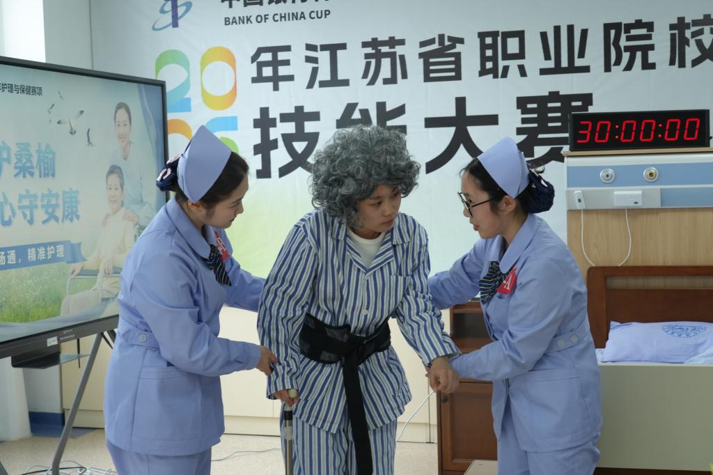 4月2日至4日,2026年江苏省职业院校技能大赛康复治疗与护理赛道老年护理与保健项目在我校举行。来自全省15所职业院校的30名选手同台竞技。我校学生马晓妍、吴佳玟凭借扎实的专业功底和出色的临场发挥,荣获本次大赛一等奖第一名。