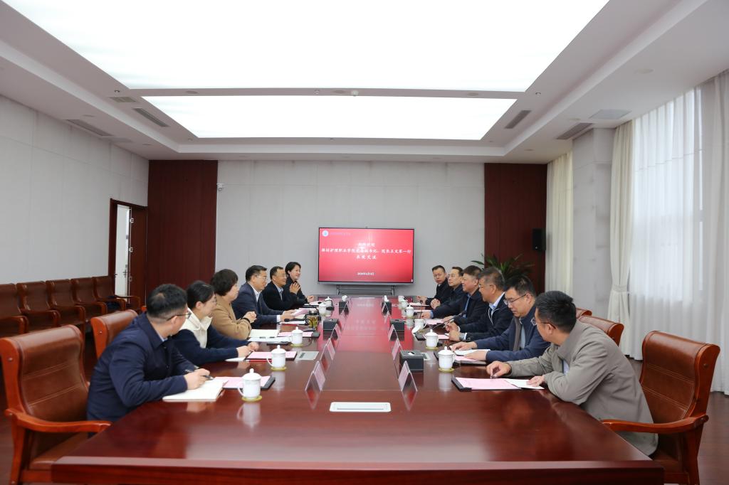 傅玉峰对王文军一行的到访表示欢迎。他简要介绍了我校的历史沿革、办学特色,近年来在人才培养、师资队伍建设等方面取得的成绩。他指出,潍坊护理职业学院专业优势突出,创新团队能力强劲,为区域卫生健康事业发展作出了重要贡献。两校在办学定位与发展理念上高度契合,希望双方以此次交流为契机,开展更深层次的交流与合作,共同推动医药卫生职业教育事业高质量发展。