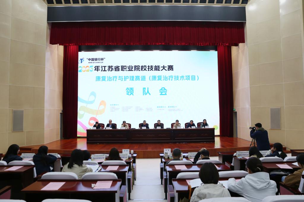 4月9日至11日,2026年江苏省职业院校技能大赛康复治疗技术项目在我校举行。本次大赛由省教育厅、省发展改革委、省工信厅、省财政厅等15个部门联合主办,我校承办。校党委书记陆志群出席领队会并致辞,党委副书记、院长傅玉峰出席成绩发布会。