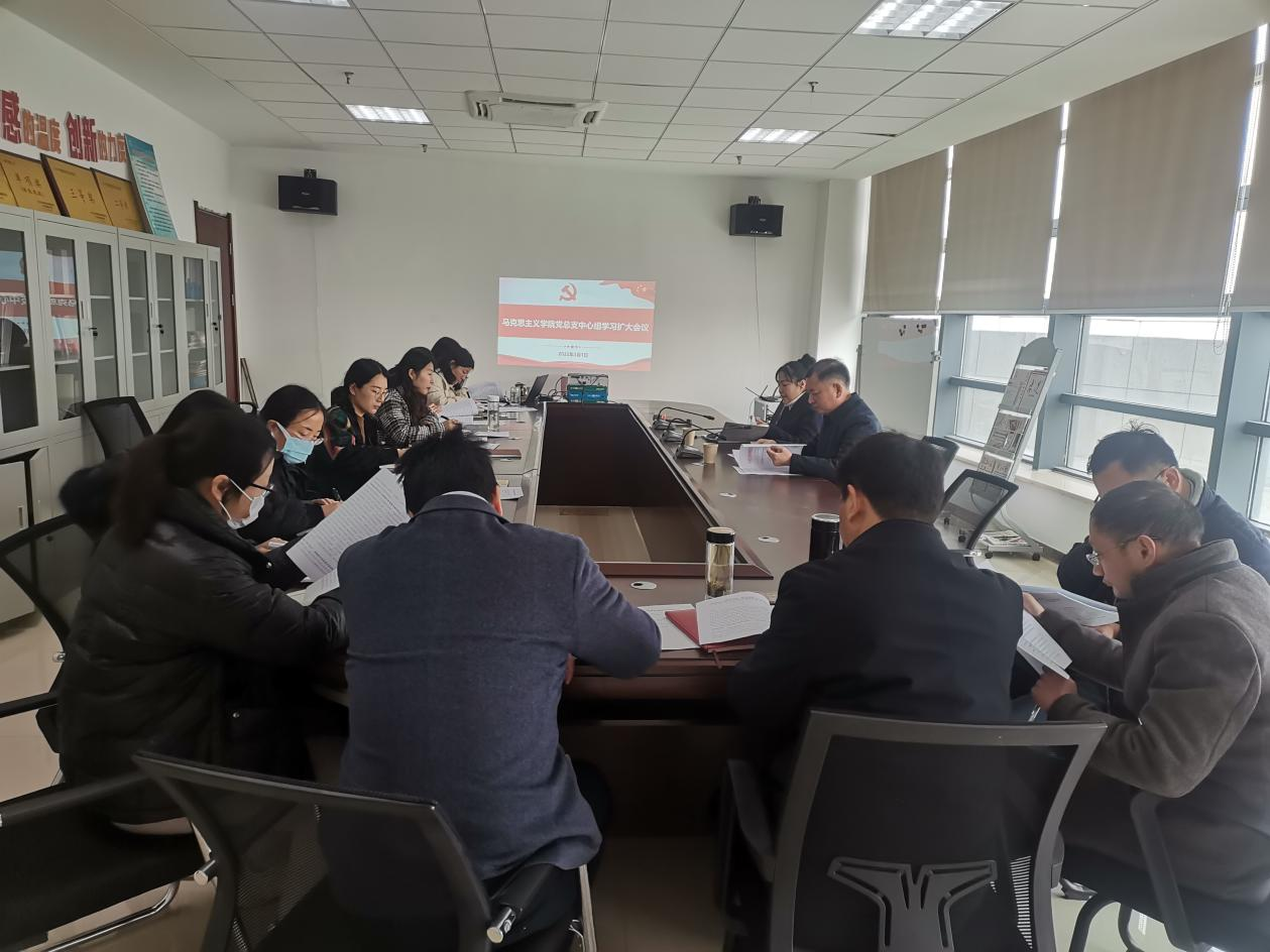 为深入学习贯彻学校2022年度党委扩大会议精神,进一步明确工作目标,细化工作举措,根据学校党委统一部署,2022年3月1日上午,马克思主义学院党总支在图书馆楼1406会议室召开理论学习中心组(扩大)会议。校党委委员、宣传统战部部长、工会主席朱郁草同志出席会议,马克思主义学院党总支书记赵静主持会议,马克思主义学院全体党员参加会议。