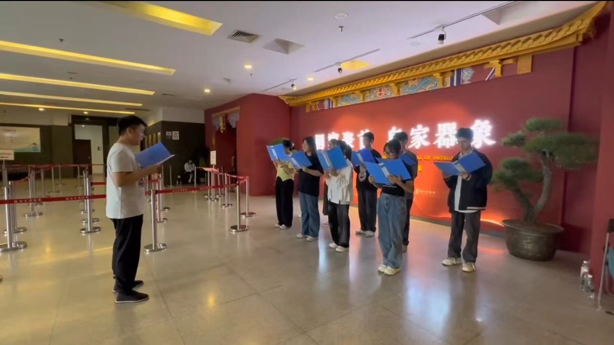 在博物馆大厅,同学们集体诵读了梁启超的《少年中国说》片段。“潜龙腾渊,鳞爪飞扬”,少年强则国强,今天的责任不在别人身上,而全在我少年身上。诵读《少年中国说》,让同学们更深刻地领悟到不仅肩负着自身理想的实现,更肩负着中华民族伟大复兴的使命任务,要努力将个人理想与社会理想结合在一起实现,勇于担当建设新时代中国特色社会主义重任。
