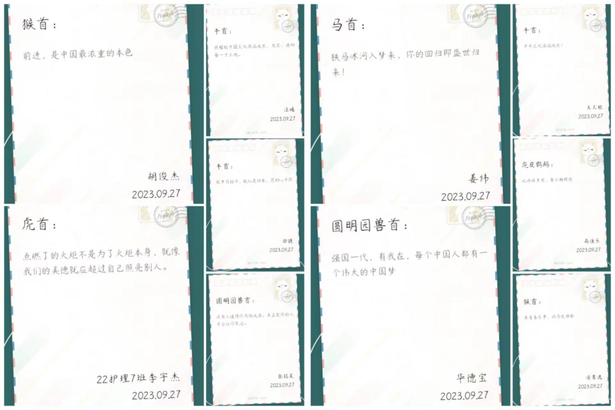 参观结束后同学们通过微信小程序为兽首制作了电子明信片,“前进,是中国最浓重的本色”“强国一代有我在”……同学们的留言表达了青年学习社成员对实现中华民族伟大复兴的信心和勇气。