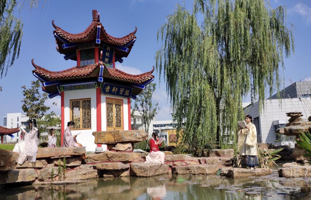 同学们身着国风汉服,伴着潺潺溪水,袅袅茶香,悠悠古琴,在诗情画意中吟诵一篇篇中医药诗词名篇佳句。活动以中医药学院焦蕊吟诵《诗词中医》开场,中药草、动植物兼具,带领大家在诗词中发现中医中药,诗词和中医交汇在科学的视角、文学的笔触、人文的情怀中,在感悟美的同时也理解了中医;随后医技学院的黄娜、周子璇、周静、朱云诵读了《国医》,在声音与诗词的碰撞中传达出中医药文化在传统诗词中的美好;护理助产学院的包欣萍、张雯雯、成玉娇、庄梦楠、李彬红、汤晓暖诵读了《连翘》《红景天》《鱼腥草》等。她们娓娓道来,以传统浸润心田,让声音传播文化,情感充沛到位,让人身临其境,跟随她们的步伐缓缓走进色彩斑斓的中医药文化世界,体会到诗词遇到中医,诗词内涵更加丰富饱满,中医遇到诗词,中医变得通俗易懂,也展现出新时代医学青年的风采。