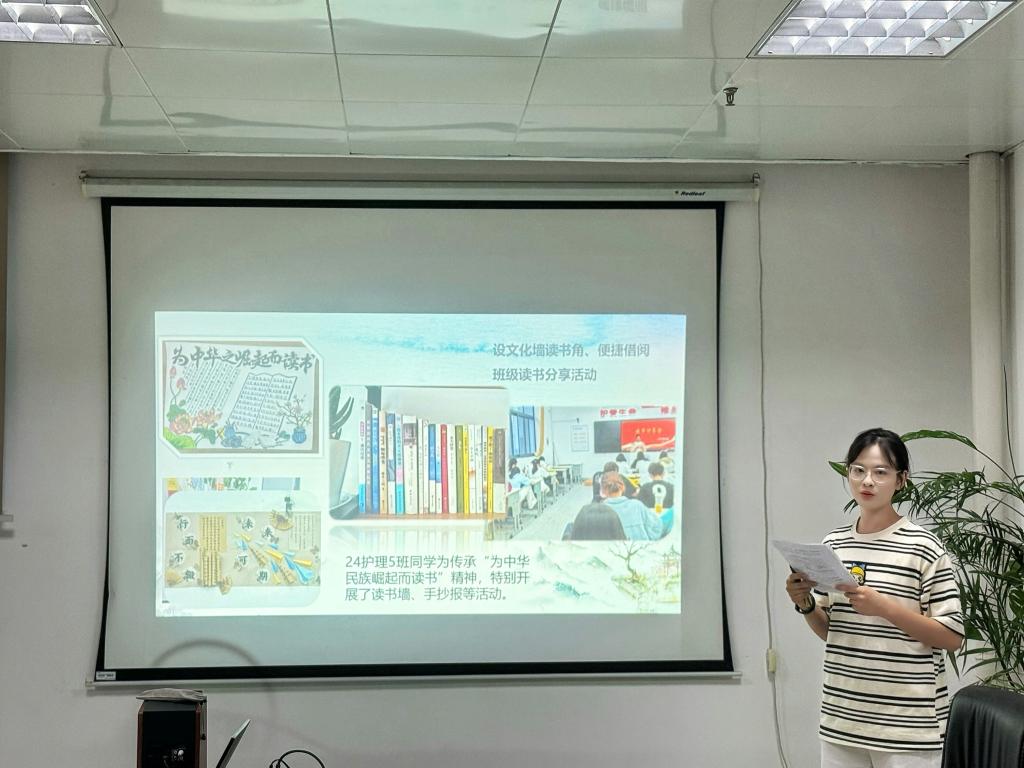 汇报环节,同学们陆续展示班级借阅图书情况、入馆人次、图书角建设及开展丰富多样的阅读活动,分享了书香班级创建途径和取得的班级荣誉等成果,大家切身感受到沐浴书海、香溢校园的阅读氛围。活动最终评选出10个班级获得“书香班级”荣誉称号,医学技术学院获得“书香学院”荣誉称号。