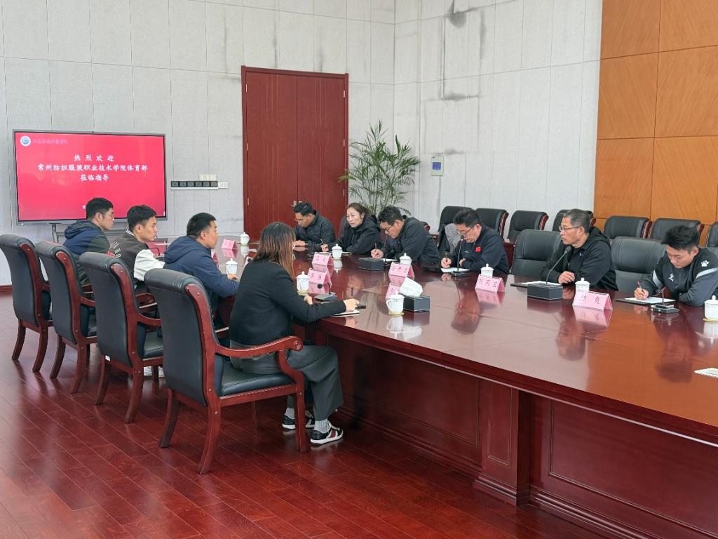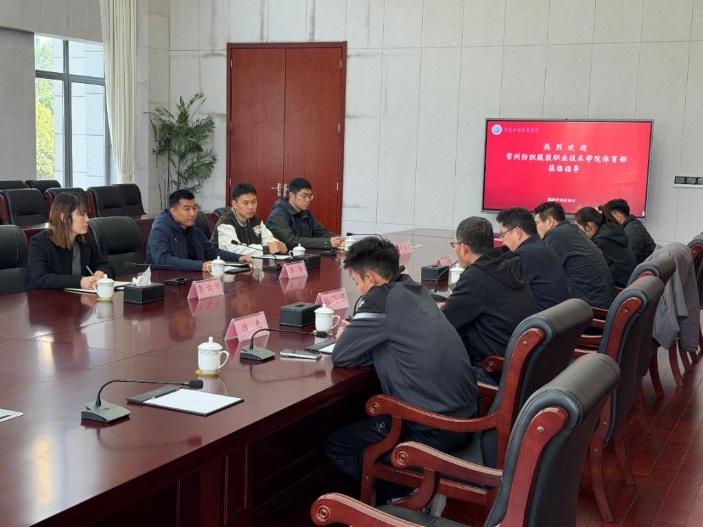 2025年10月24日,常州纺织服装职业技术学院体育部部长孙开宏一行6人赴我校调研学校体育工作,我校体育部副部长李伟、教务办主任李佳妍、综合办主任生守程参与调研。