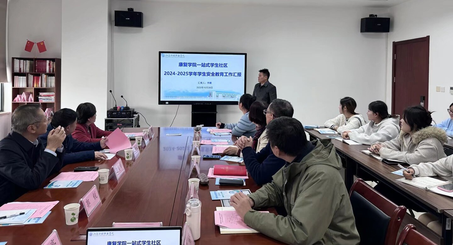 10月28日下午,康复学院“青春聚力筑安全 深研细查保同行”学生安全教育月暨2025-2026学年社区安全工作调研会在图书馆1102会议室举行。校党委副书记陈鸣鸣,校党委委员、纪委书记王传荣到会指导。康复学院健康社区联系干部、健康社区党支部全体党员及学生代表共同参会。会议由康复学院党总支书记曾巨祥主持。