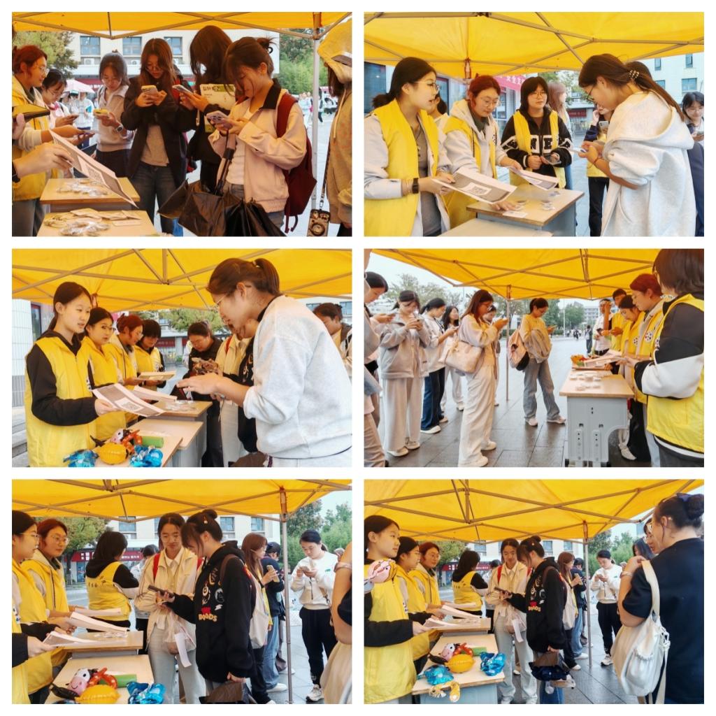 10月15日,线下活动在食堂前小广场举办。“青春答卷·爱国知多少”答题挑战吸引众多同学踊跃参与,现场气氛热烈。成功挑战的同学还获得了学校定制的文创纪念品,在趣味互动中深化了对祖国的了解与热爱。