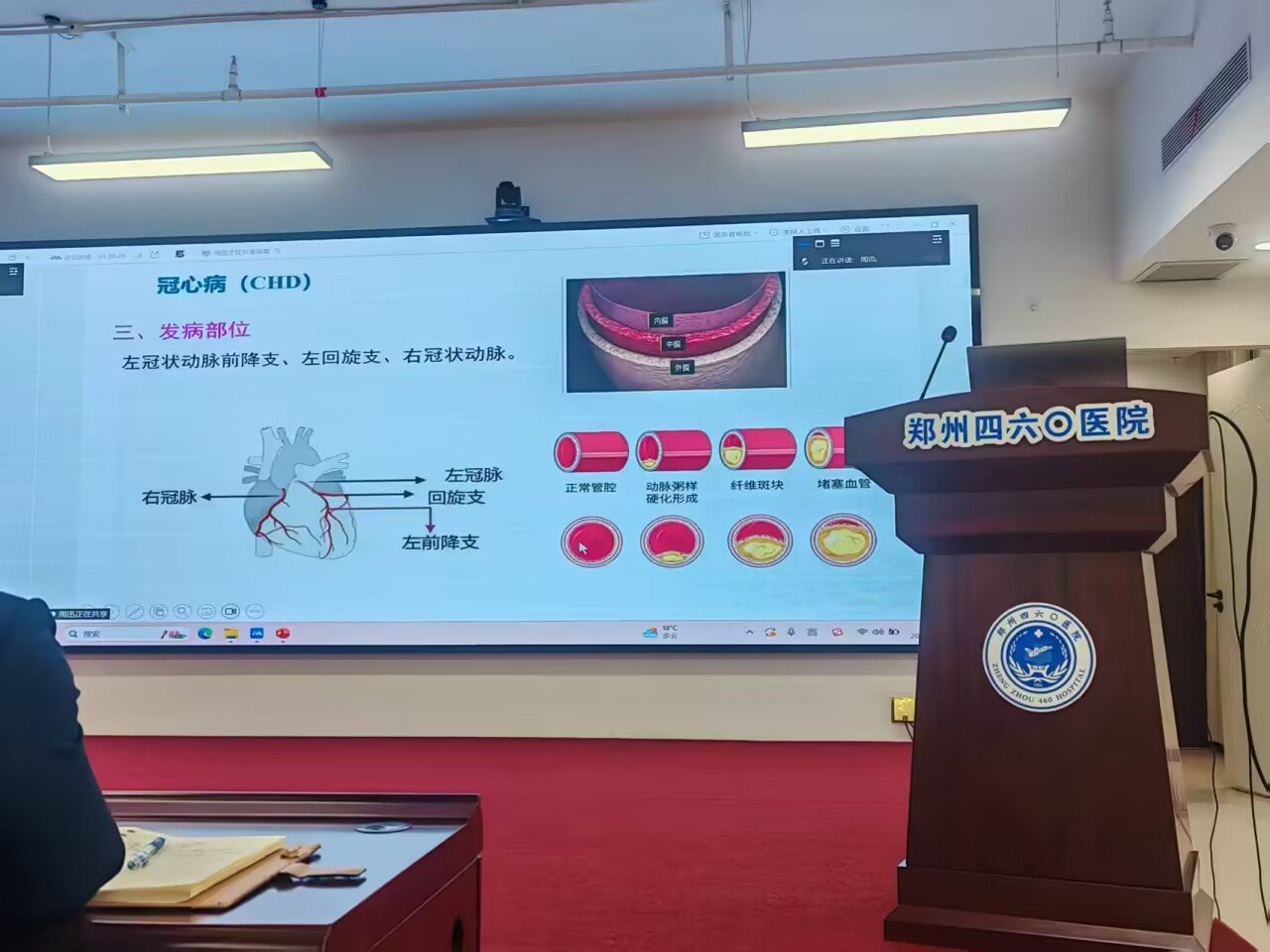 2025年11月14日下午,基础医学部与郑州四六〇医院联合举办“党建引领 融合赋能”临床应急能力提升专题培训。培训以“急性冠脉综合征——从解剖溯源到急救决胜”为主题,面向郑州四六〇医院全体护理人员、实习生。