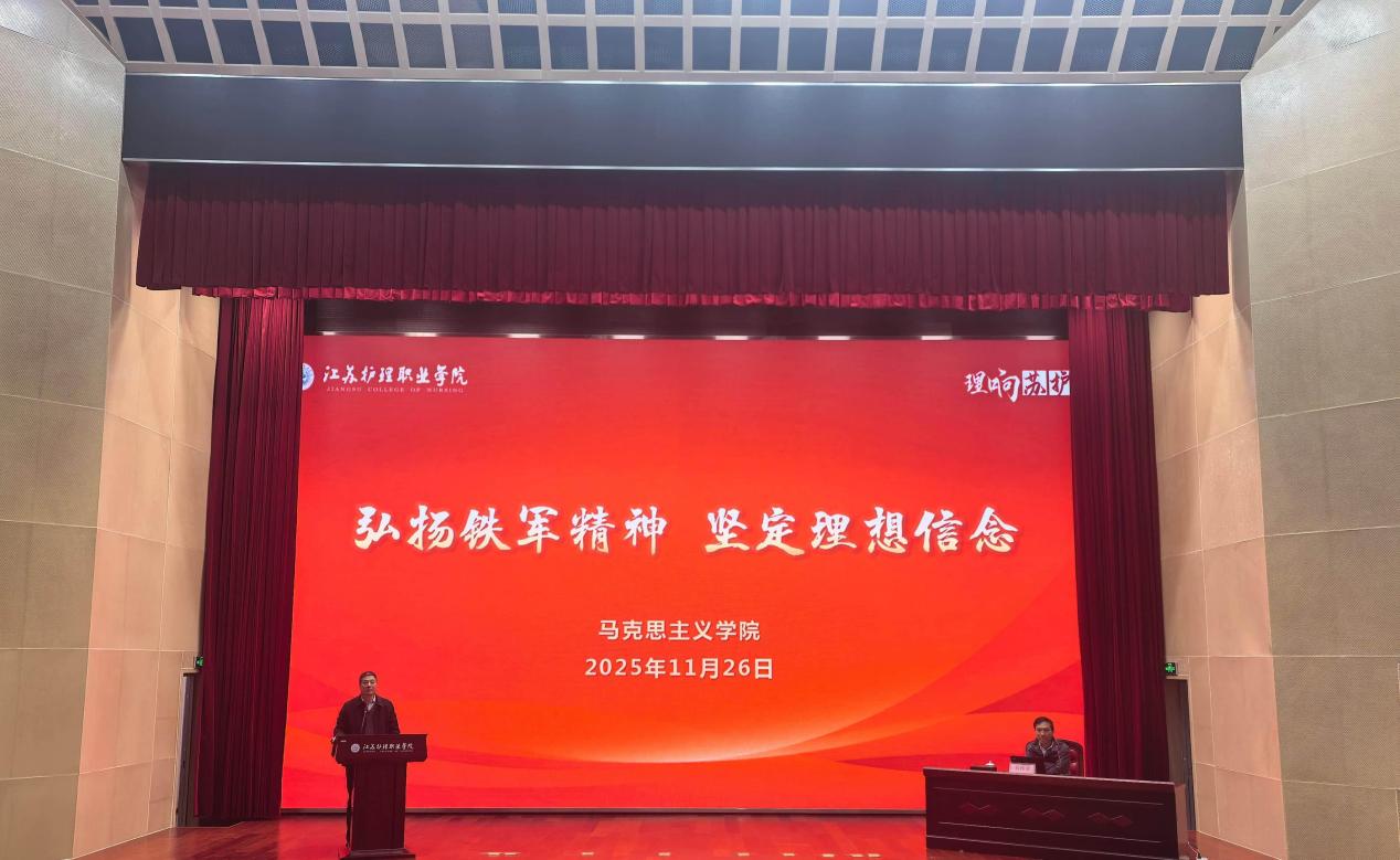 本次讲座是江苏护理职业学院深化爱国主义教育、推动思政育人创新的重要举措。学校将继续挖掘红色资源,拓展教育形式,让抗战精神和铁军精神在新时代焕发更加璀璨的光芒,不断培育“敬佑生命、救死扶伤、甘于奉献、大爱无疆”的新时代卫生健康人才,为健康中国建设贡献力量。