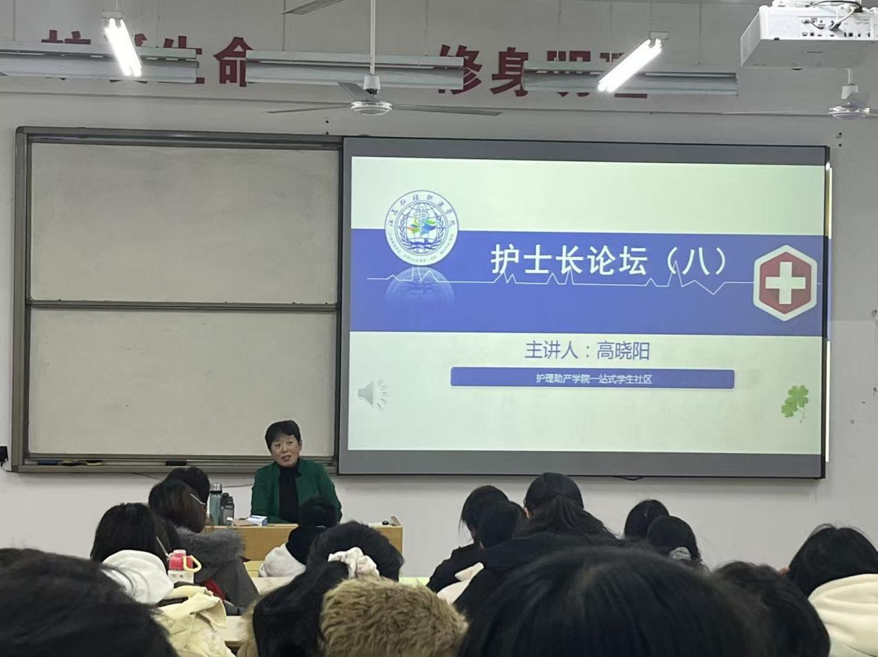 2025年12月17日,护理助产学院“一站式”学生社区第八期“护士长论坛”在教学楼101室顺利举行,本期论坛特邀主讲嘉宾为护理助产学院关工委副主任高晓阳。