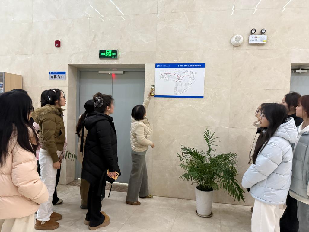 紧接着,图书馆工作人员结合馆内布局,实地讲解了在紧急情况下各区域的安全疏散路线、最近的安全出口位置,以及疏散过程中的注意事项。通过清晰指引,每位学生馆员都能成为熟悉“生命通道”的合格引导者。
