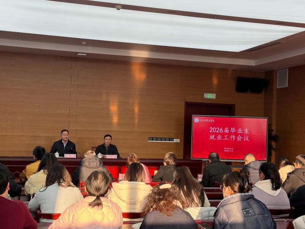 1月12日,我校召开了2026届毕业生就业工作会议。会议由学校党委副书记陈鸣鸣主持。招生就业处、教务处、国际合作交流处、各二级学院负责人,各专业带头人以及全体辅导员、2026届毕业班全体班主任、职业生涯规划课授课教师参加了会议。