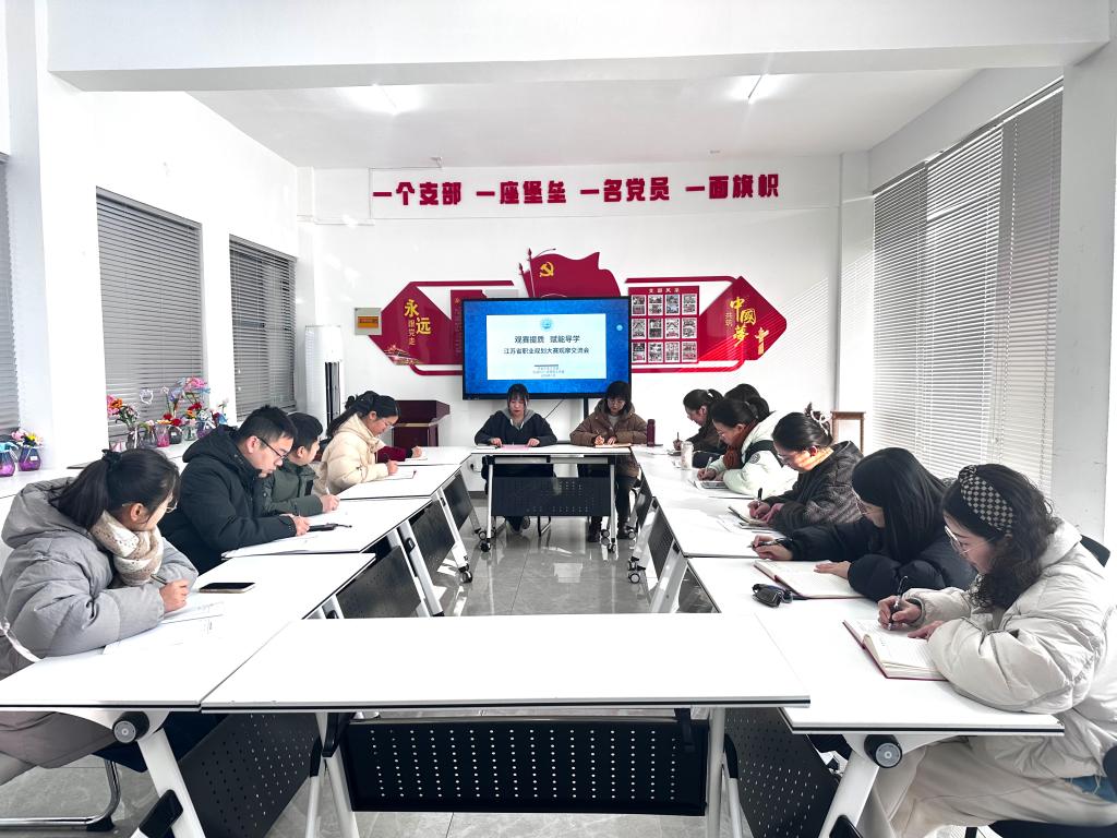 在交流分享环节,与会辅导员结合观赛感悟与导学实践各抒己见,围绕“职业规划早介入”“目标拆解与学业衔接”“就业引导”等议题深入探讨,既分享实操设想,又纾解工作困惑。