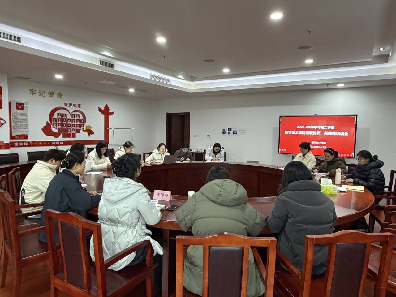为推动新学期教学工作的有序开展,2026年3月1日,医学技术学院以线上线下相结合的形式召开了新学期兼职教师与新教师培训会议。2025年新入职教师、来自淮安市12个单位以及昆山、镇江、徐州3家驻点医院的40余名兼职教师共同参训,医学技术学院院长许国莹、副院长朱玲,学院教学管理人员及各教研室主任共同参会。会议由朱玲主持。