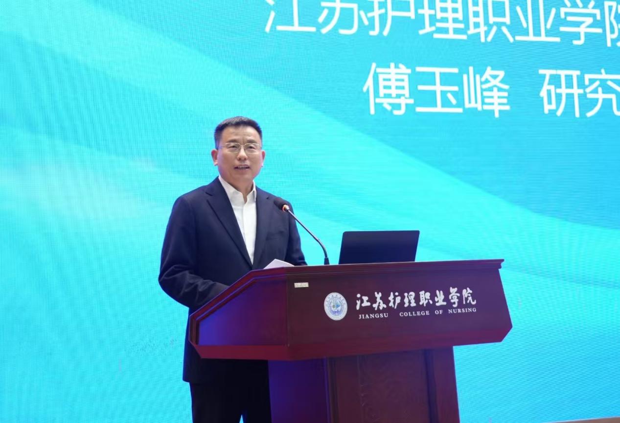 江苏护理职业学院党委副书记、院长傅玉峰致辞,从办学实践出发,阐述了数智素养提升对教师发展与人才培养的重要意义。