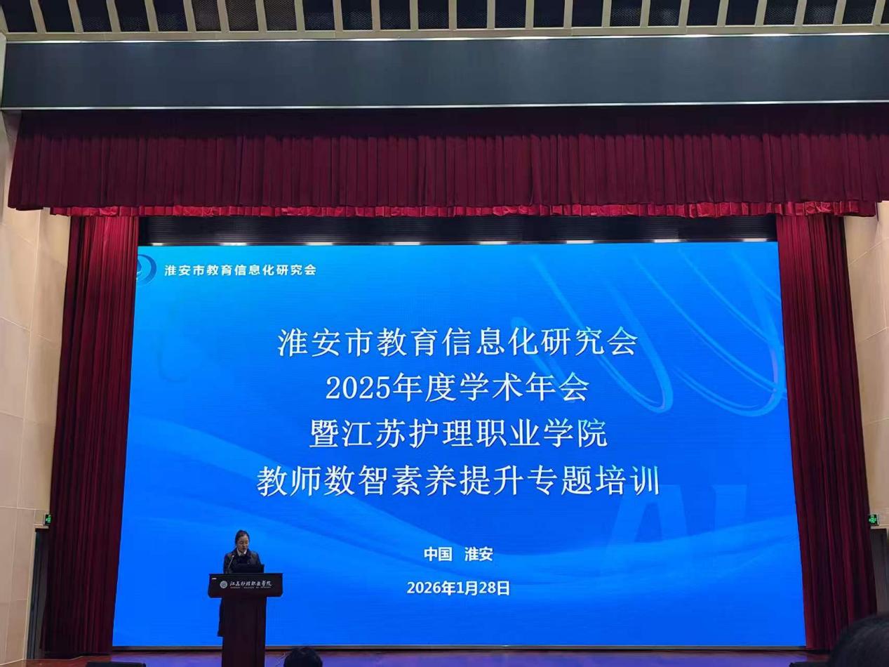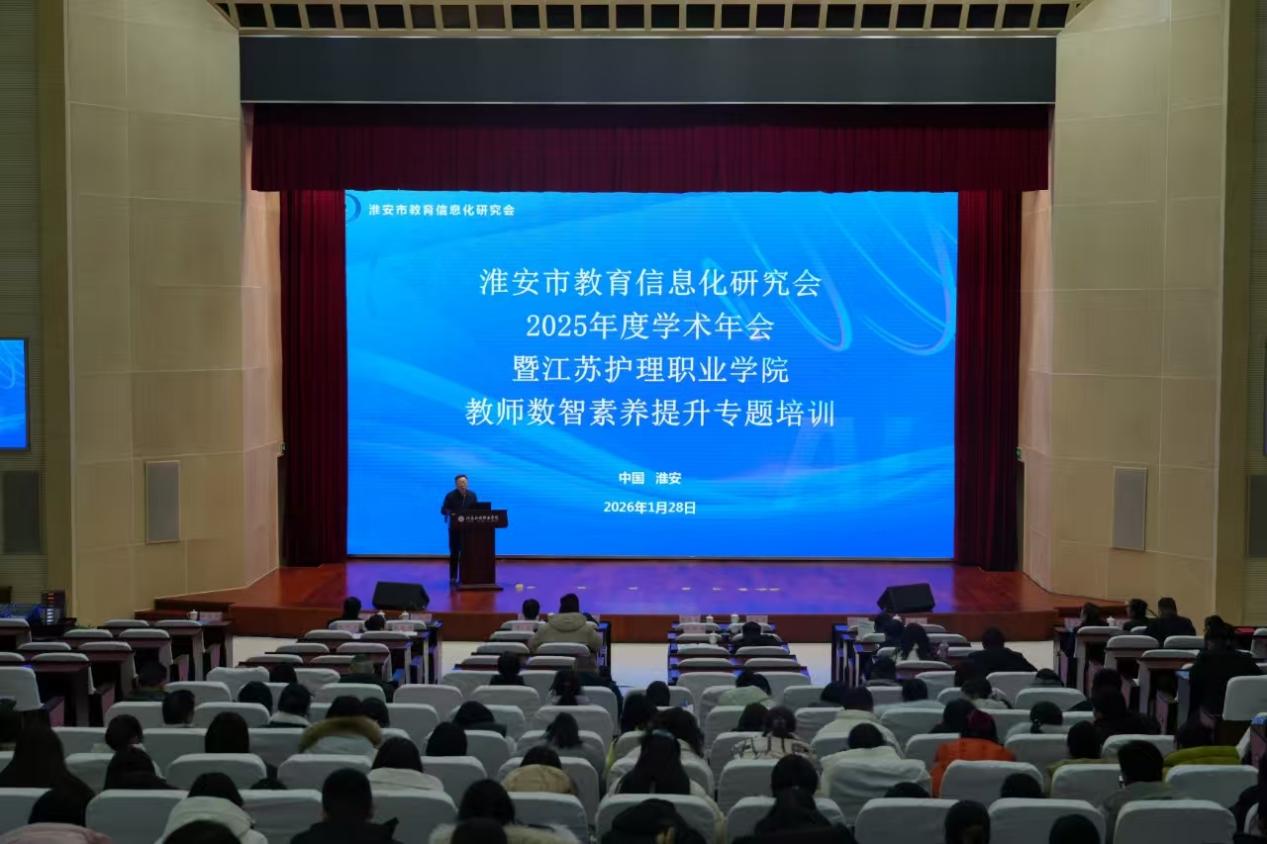 2026年1月28日,由淮安市教育信息化研究会主办,江苏护理职业学院承办的淮安市教育信息化研究会2025年学术年会暨教师数智素养提升专题培训圆满落幕。本次培训汇聚了400余名来自教育界、产业界的专家学者、一线教育工作者与行业代表,共探教育数字化转型的新路径、新可能。