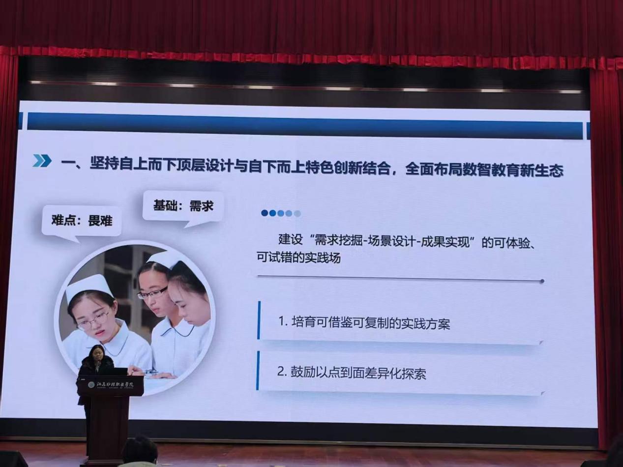 江苏护理职业学院党委委员、副院长夏立平教授勾勒“智护未来:护理专业数字素养教学体系设计”蓝图。