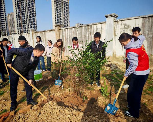 活动开始,师生分工明确,配合默契,挥锹挖坑、培土压实、提水浇灌,干劲十足,充分发扬了不怕苦、不怕累的优良作风和团结协作精神。
