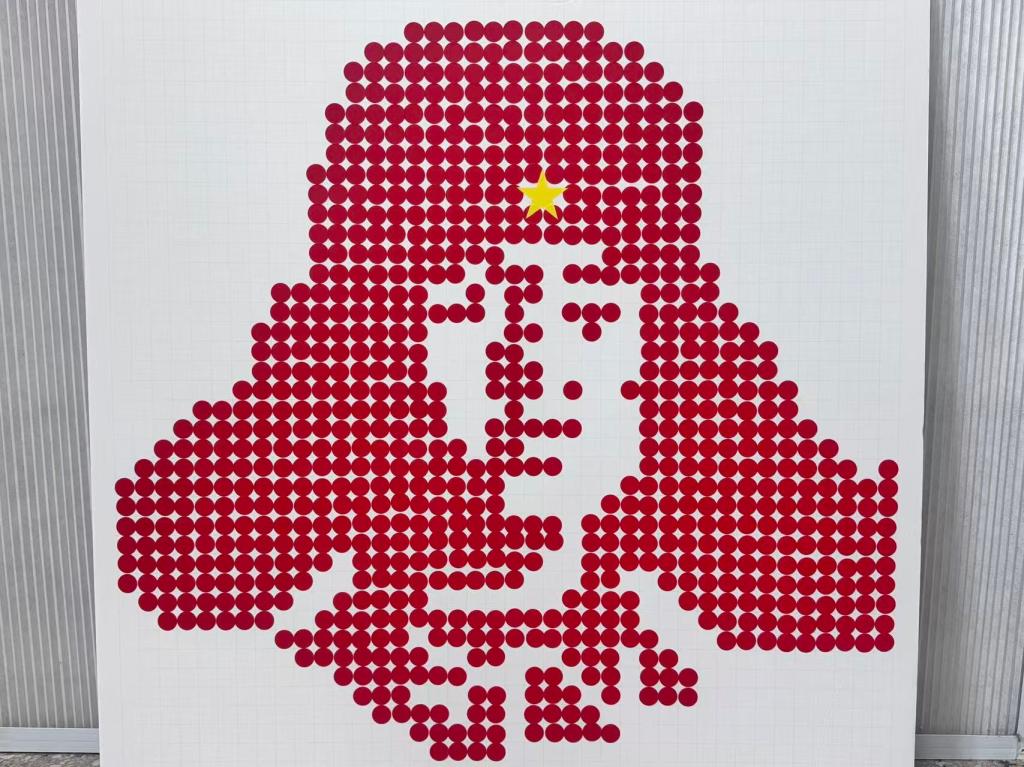 拼图结束后,150余名参赛学生每人手持红色圆贴,怀着对雷锋同志的崇高敬意,认真地将一片片红色圆贴粘贴在白色展板上。随着最后一片圆贴就位,清晰生动的雷锋形象完整呈现,尽显新时代青年对雷锋的敬意。