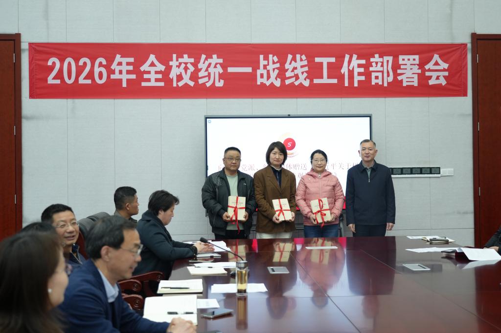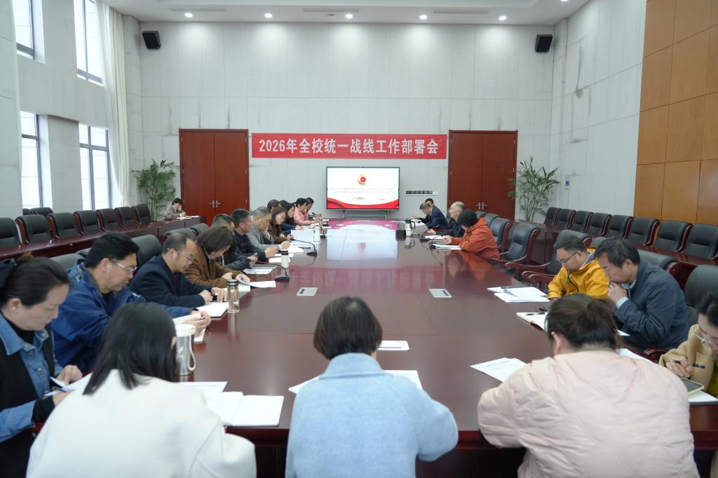 4月22日下午,我校召开2026年统一战线工作部署会暨统一战线工作领导小组会议。校党委委员、宣传统战部部长朱郁草,学校统一战线领导小组成员单位负责人,各二级党组织负责人,各统战团体负责人,各二级党组织统战委员等参加会议。会议由宣传统战部副部长柏萍主持。