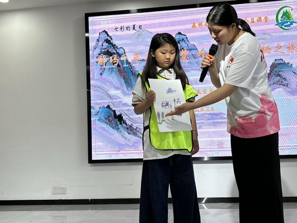 接着,志愿者们借助图片和实物展示,向儿童们生动介绍中药的来源、功效,并讲解药食同源的药材知识。此外,志愿者还设计了中医药文化知识竞赛小游戏,内容涵盖名家故事和中医药知识,儿童们踊跃举手抢答,在有趣的互动游戏中深化对中医药知识的理解。