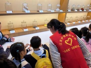 生命科学馆内,小朋友们被人体模型与器官标本深深吸引。专业导师以浅显易懂的语言讲解人体构造,孩子们通过直观接触,逐渐建立起对“自身身体”的认知框架,更深刻体会到珍爱身体的重要性。智慧医护实训基地的宣誓大厅中,伏羲、黄帝等雕像肃立,志愿者借“神农尝百草”的传说,将中医药文化的源流演绎得栩栩如生;中药馆里,志愿者引导孩子观察药材的色泽与形态,用“像小树枝”“似花朵”等形象比喻帮助小朋友理解;中医馆内,志愿者通过“观气色”“辨气味”“触小手”等充满童趣的互动方式,生动诠释“望闻问切”,点燃孩子们对中医奥秘的探索热情